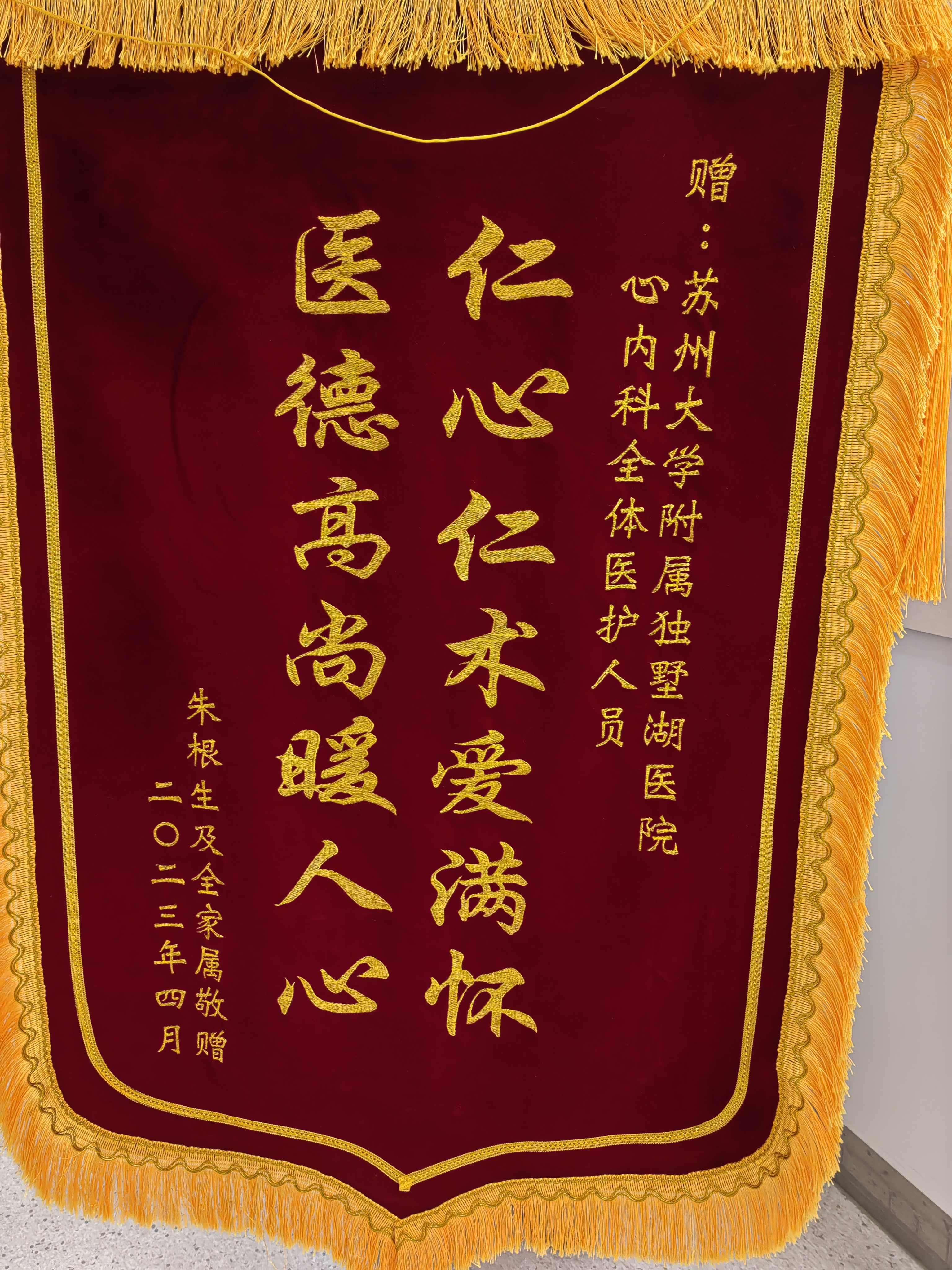 患者朱先生及家属赠送锦旗感谢我院心内科全体医护