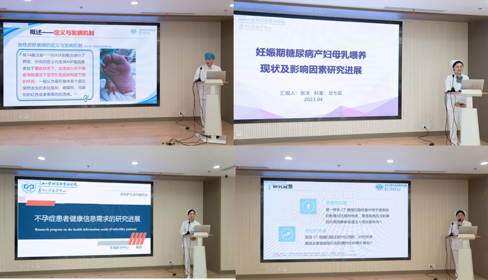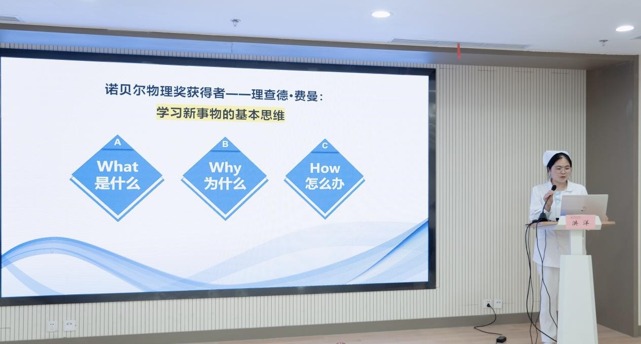 选手们抓住临床热点与难点,通过PPT综述了本专业护理最前沿的发展趋势和最新的技术方法,展现了年轻护士在工作中主动思考,将临床工作与护理科研紧密结合的学习热情。本次报告会特邀请了2023年苏州市青年护士读书报告会”三等奖获得者——护理部洪洋老师进行了展示,洪洋老师的优秀示范为独墅护理青年护士们关于读书报告会的选题和汇报形式上提供了一定的参考,大家表示受益匪浅。