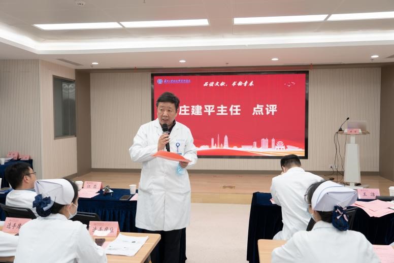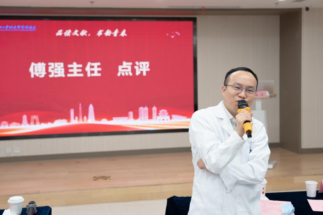 傅强主任、庄建平主任、江淼处长分别对选手的报告从现场综合能力、报告内容、文献检索能力等方面做出了精彩点评与指导。傅强主任夸赞了护理团队在王洁主任的领导取得的优异成绩,并强调要将“白衣天使”的外在表现转化成内涵体现,围绕医院“研究型、国际化、高水平”的发展定位共同努力。庄建平主任和江淼处长表示此次读书报告会研究涉及范围广、内容深,研究设计方法科学,充分展现了护士的专业素养和水平。