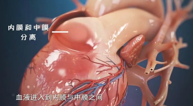 为什么主动脉夹层如此凶险?源于主动脉特殊的结构。人的主动脉结构和汽车轮胎有相似之处,轮胎一般有两层,主动脉更复杂一些,它有三层。当主动脉壁受到各种病因的影响,所受压力与结构开始发生变化,在高速、高压血流持续的冲击下,主动脉内膜与中膜分离,血液进入到内膜与中膜之间,此时就跟汽车轮胎鼓包了一样,主动脉上形成了一个随时都可能会破掉的瘤子。