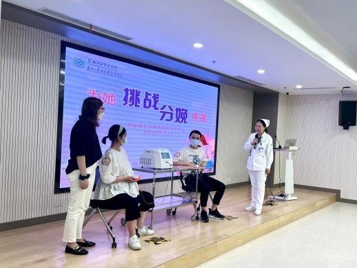 活动中,王逸倩护士长和大家分享了母乳喂养的小妙招,并希望大家要有早接触、早吸吮母乳的认识,要了解亲密的肌肤接触可以帮助宝宝适应最初的子宫外环境,促进身体各机能的稳定,也能帮助妈妈和宝宝建立感情,助力哺乳的顺利进行。