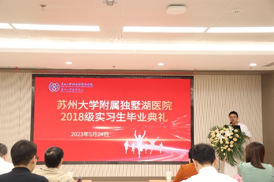 五月清爽的风送来了别离的讯息,又是一年毕业季,苏州大学附属独墅湖医院于5月24日举办了2018级本科实习生结业仪式,欢送建院以来第一批本科实习生。苏州大学苏州医学院龚政副院长、钟慧副院长、医学教育办公室潘燕燕主任等应邀出席活动。