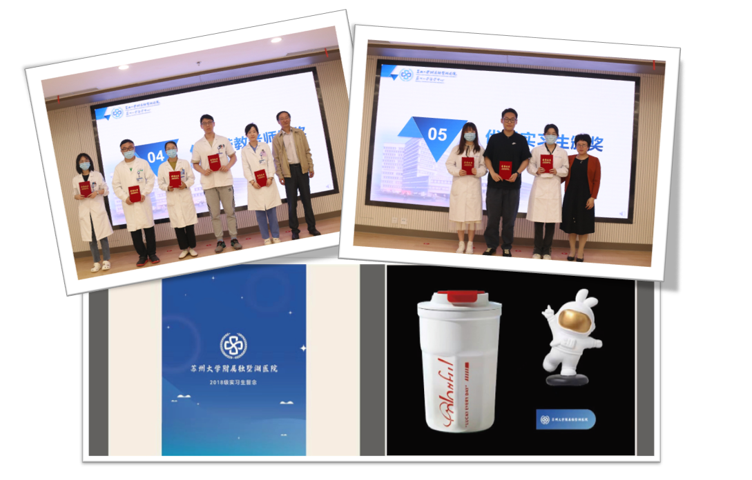 实习生代表朱文涛、宋玥洋先后进行了发言,他们表示在过去的一年实习中收获满满充实难忘,临床能力和实操技能都得到了提升。结业仪式特别设立了两个颁奖环节,以表彰优秀带教老师和优秀实习生。优秀带教老师分别是罗勇骏、陈鸿、许慧、高畅、吴佳茗;优秀实习生分别是朱文涛、王雨辰、宋玥洋。科教处还为每名毕业生准备了定制纪念品,希望各位毕业生在未来的工作学习中不忘初心,砥砺前行,带着学校和学院的殷切嘱托,带着家人的期盼,治愈更多的病患,为健康中国贡献力量。