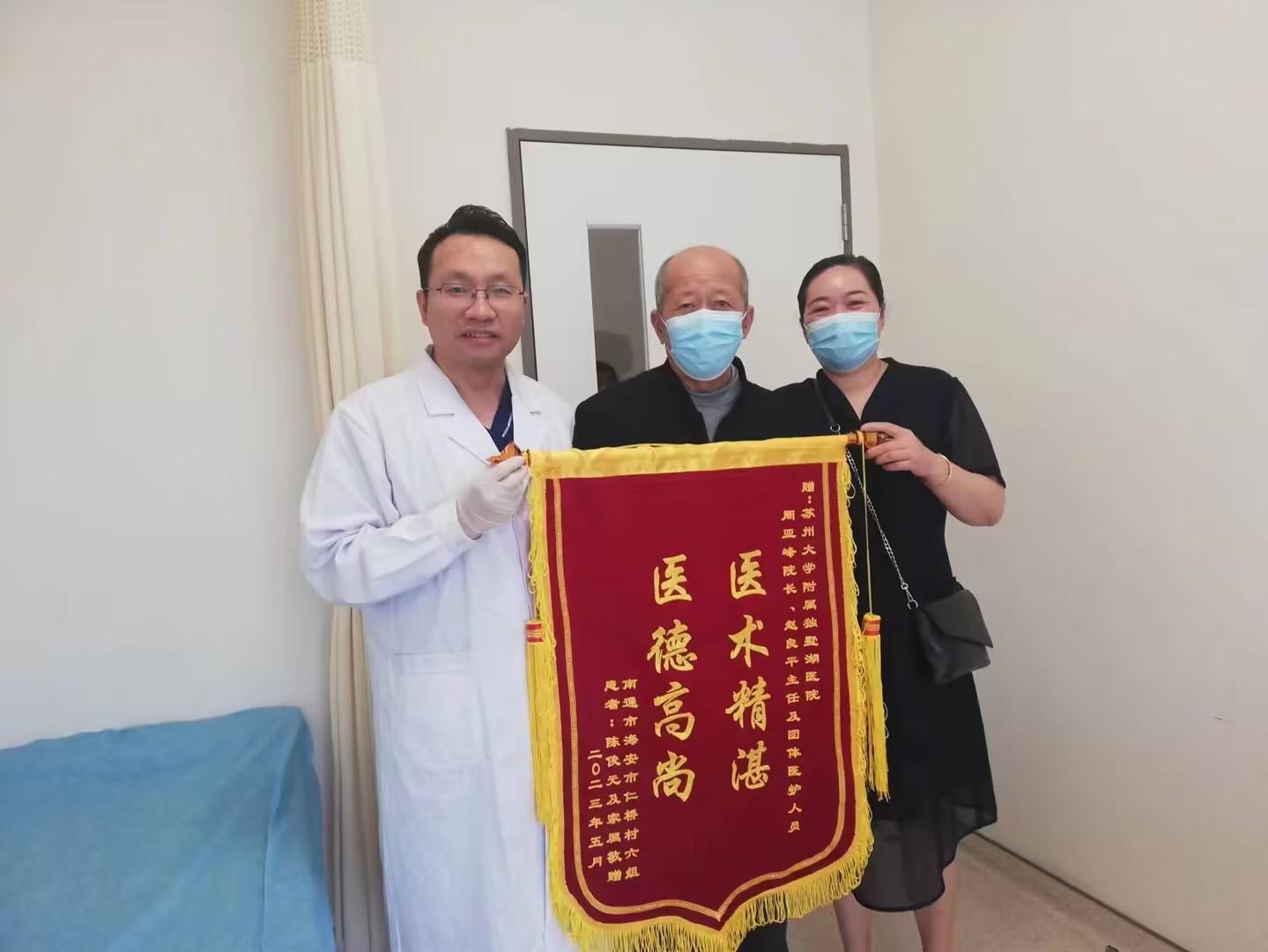 患者陈先生及家属赠送锦旗感谢我院心内科周亚峰副院长、赵良平主任医师及全体医护