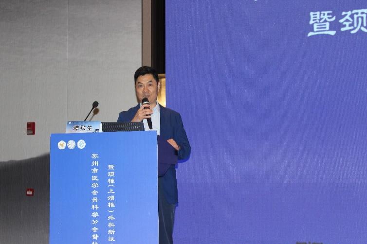 苏州市医学会谭秋生秘书长作开幕致辞。他表示,骨科学是医学的重要学科,微创手术越来越得到患者的认可与接受,颈椎外科的发展也是日新月异。本次会议汇聚了众多省内外脊柱外科界的精英,他们的传经送宝和倾囊相授,必将对苏州的脊柱微创领域以及颈椎外科领域的发展起到积极的推动作用。