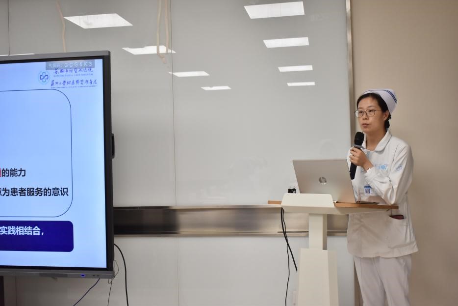 赵丹科护士长从实习生培训、实习生导师制、实习生考核制等教学管理制度与特色带教工作等方面介绍了我院的实习带教内容,展示了我院护理实习带教的硬件条件与优秀的带教团队。最后,护生代表畅谈自己的实习感受,表示一定会认真学习,严格执行医院各项工作制度及带教计划,保质保量完成实习任务。