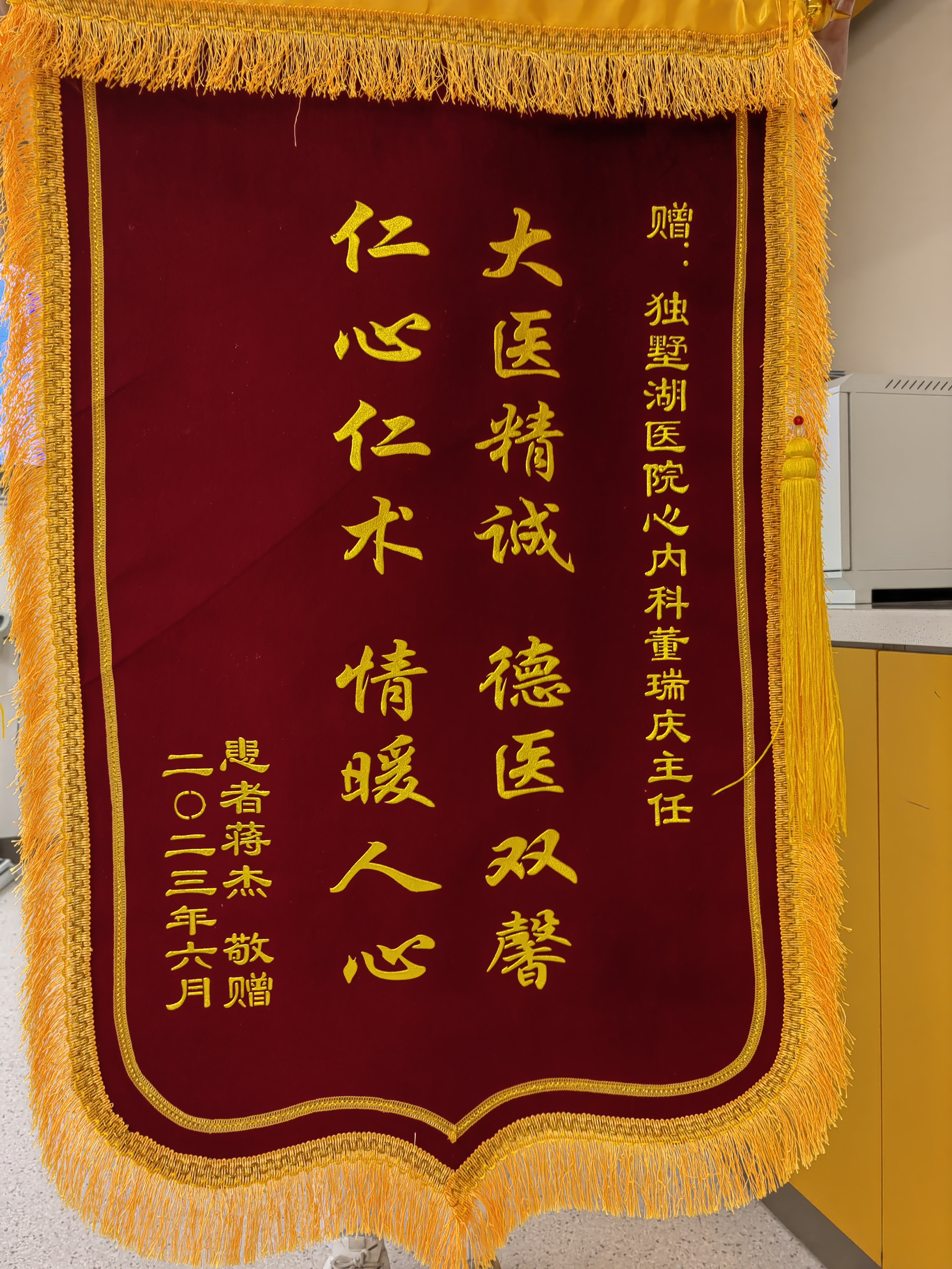 患者蒋先生赠送锦旗感谢我院心内科董瑞庆副主任医师