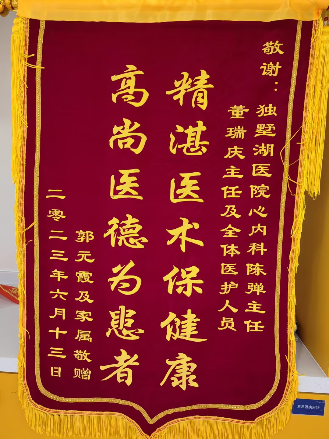 患者郭女士及家属赠送锦旗感谢我院心内科陈弹副主任、董瑞庆副主任医师