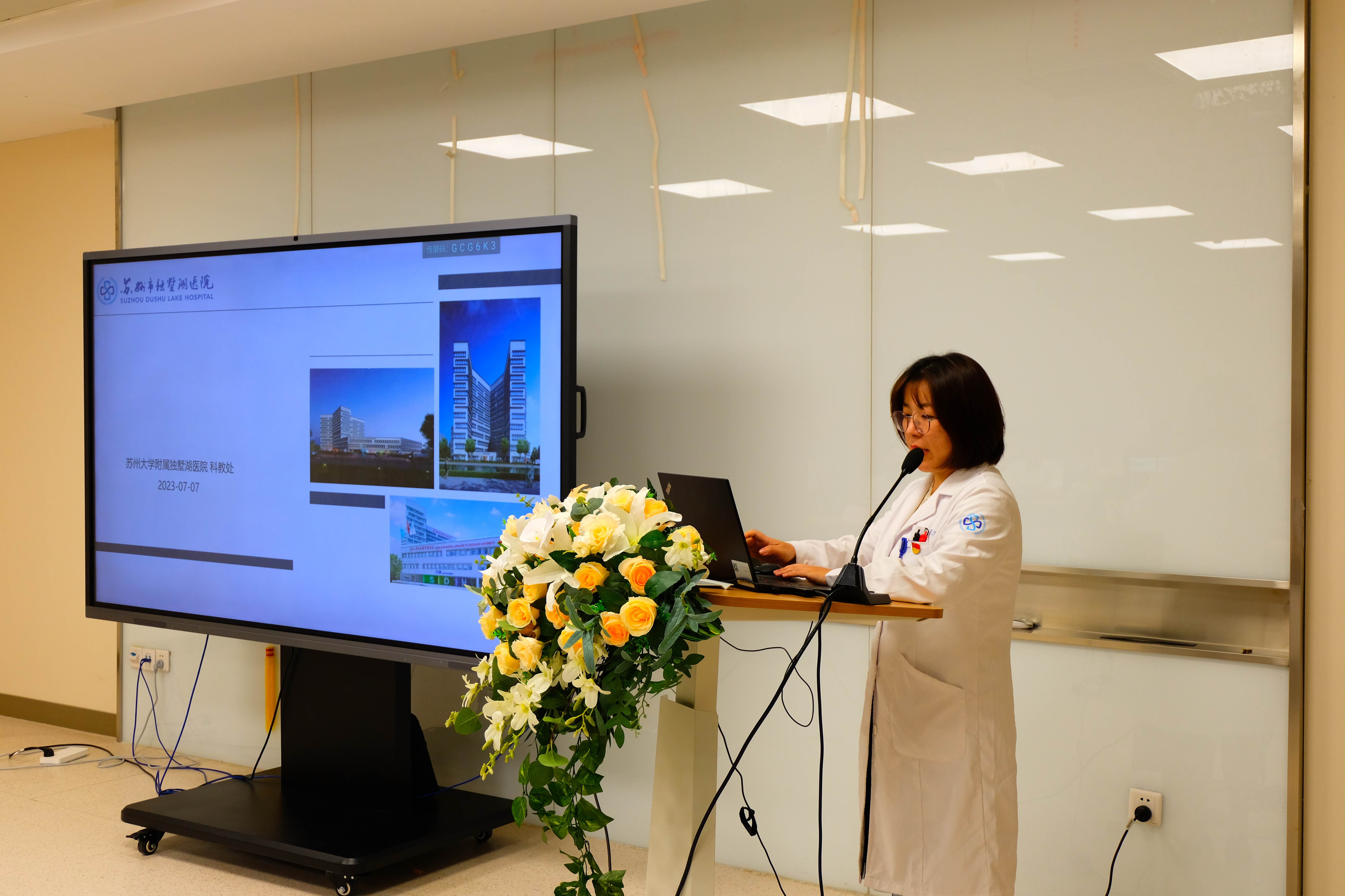 7月7日下午,独墅湖医院举行2023 级专业型硕士研究生迎新仪式暨入院教育活动。方琪院长、周亚峰副院长、科教处江淼处长、仝瑞青副处长及全体专硕新生出席此次活动。