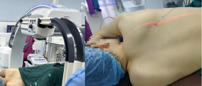 经过我院马海涛主任治疗团队评估病情后,决定为吴先生在全麻下行右上肺肺段切除术。因为吴先生右上肺的结节较小(约8mm),位于右上肺后段,马海涛主任治疗团队决定在行Cios Spin移动式C臂引导下激光导航定位肺结节+VATS肺手术,以快速精准地切除病灶。