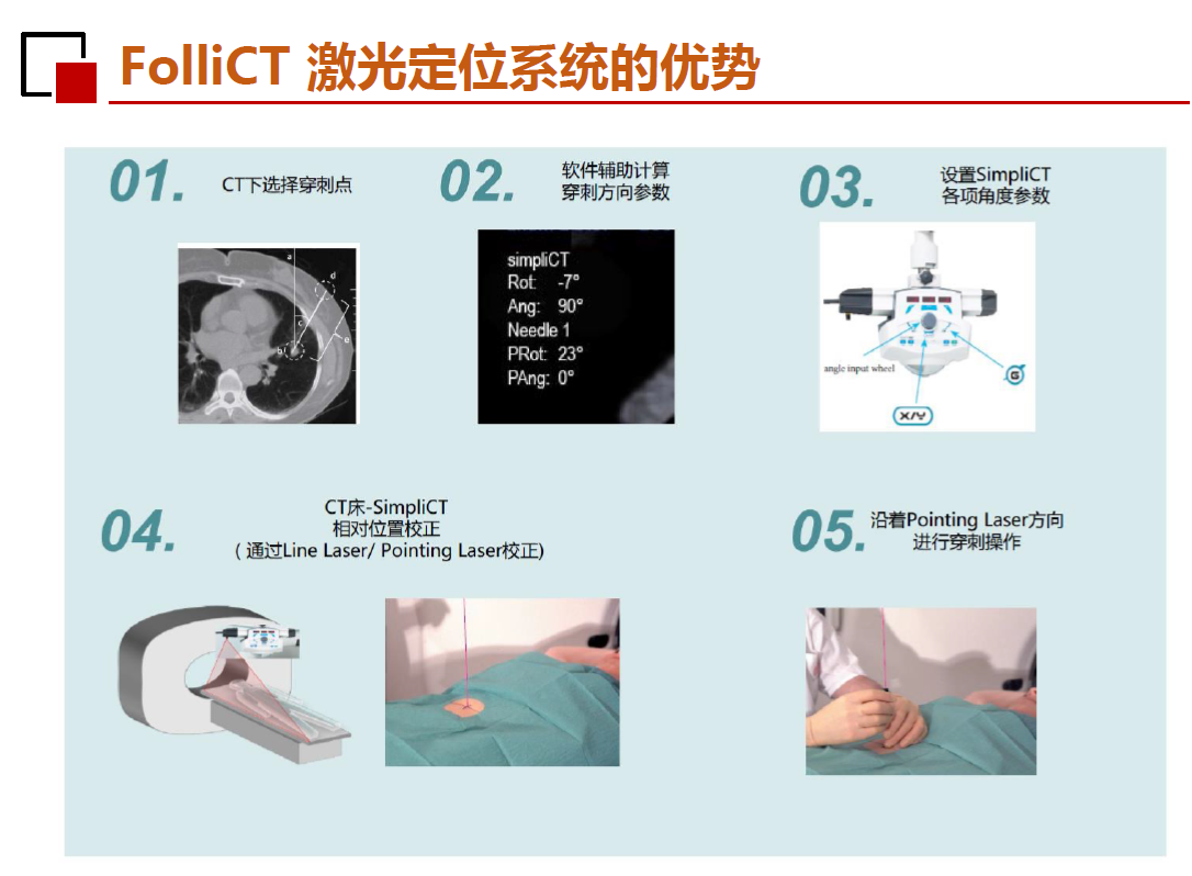 另外使用的激光导航定位系统,辅助医生进行肺结节定位、穿刺等操作流程,使得肺结节经皮穿刺更简单、更安全、更快捷。