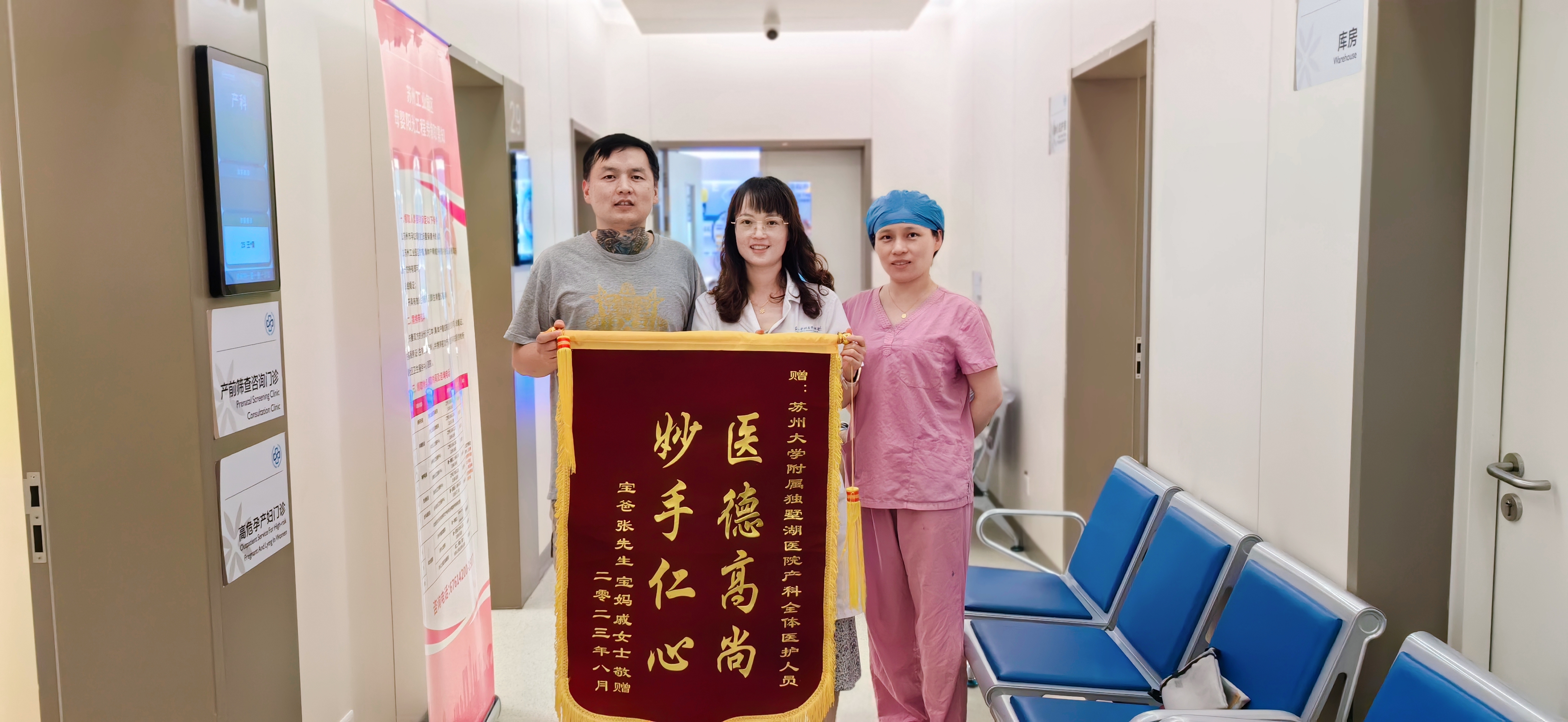 患者张、戚夫妇赠送锦旗感谢我院妇产科全体医护