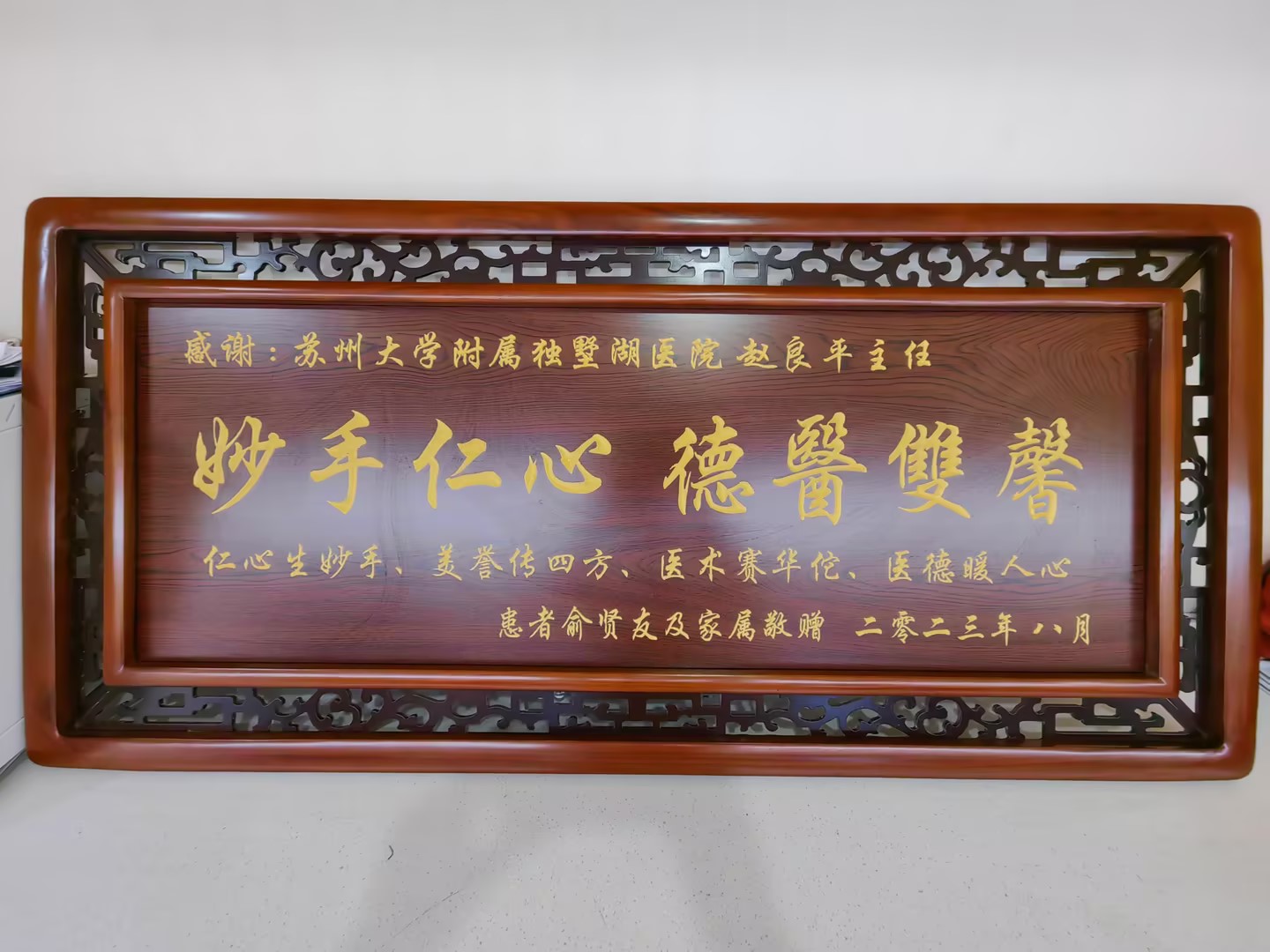 患者俞先生及家属赠送匾额感谢我院心内科赵良平主任医师