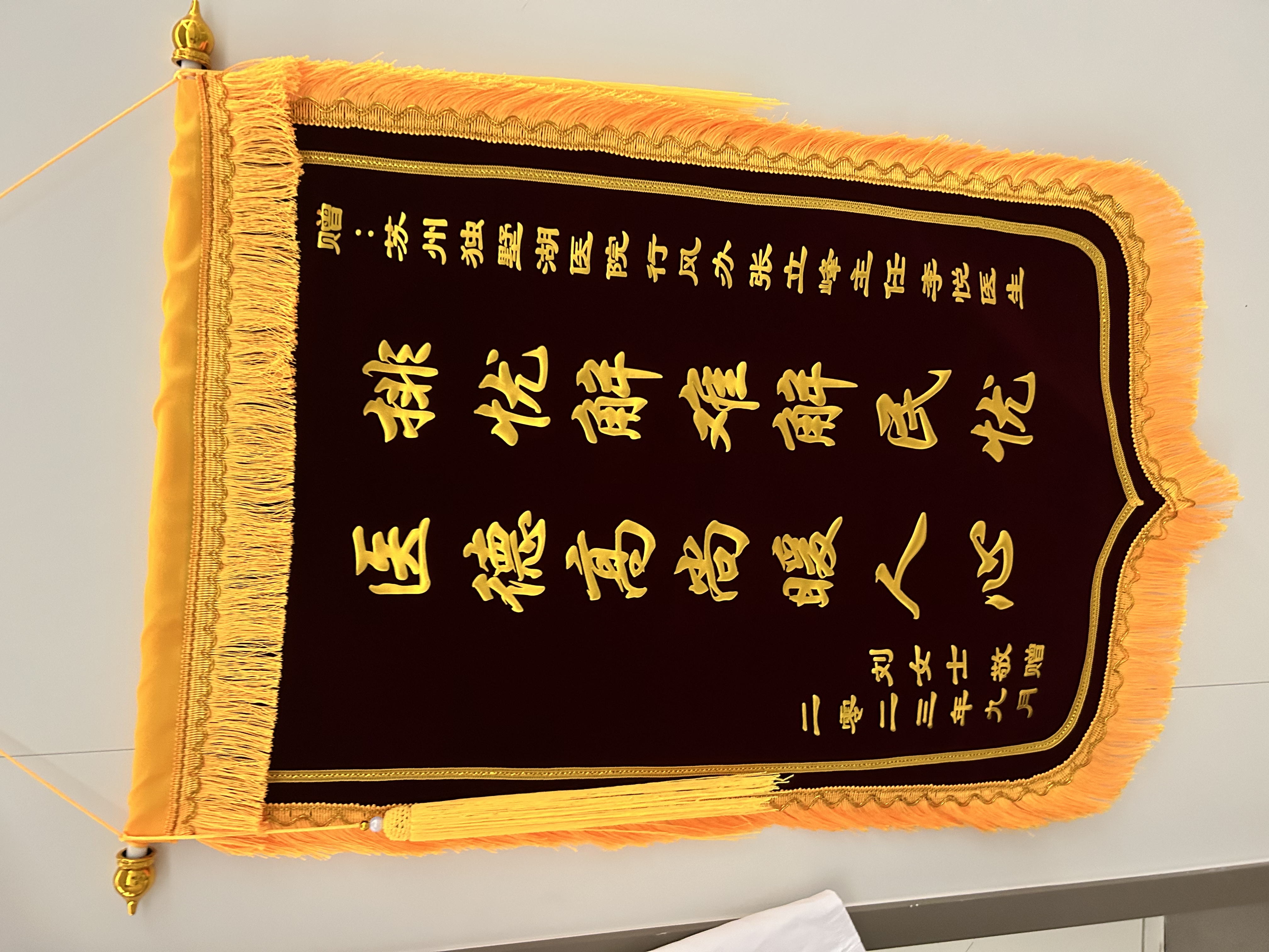 患者张女士赠送锦旗感谢我院医务处(行风)张立峰副主任、李悦