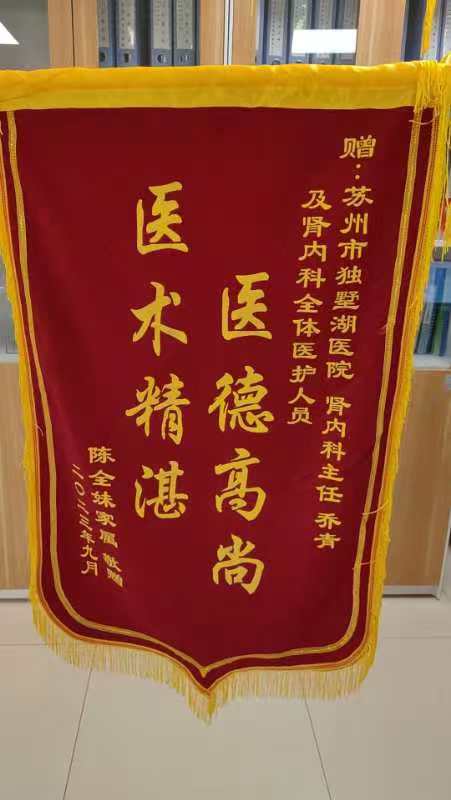 患者陈女士及家属赠送锦旗感谢我院肾内科乔青主任及全体医护