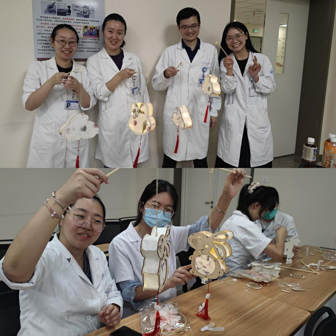 活动中,手工老师首先对花灯制作的材料和操作过程中的注意事项进行了详细说明,同时现场展示了花灯的制作步骤并进行了方法讲解,以确保同事们都充分了解花灯的制作流程。在初步掌握了制作花灯的技巧之后,大家就在老师的指导下热情高涨地开始动手实践。在愉快和谐的氛围中,不一会儿,一盏盏精致的小兔子手工花灯就在同事们的巧手中诞生了。看着自己成功点亮的花灯,每个人的脸上都洋溢着开心的笑容。