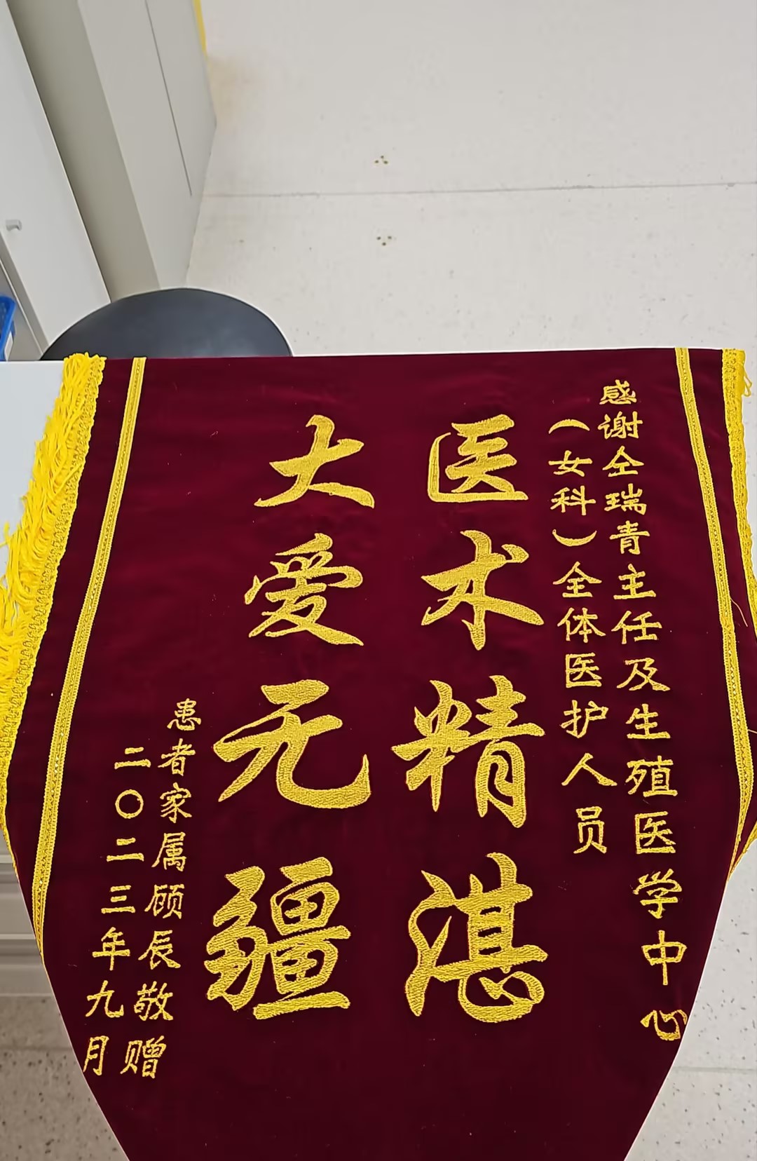 患者家属顾先生赠送锦旗感谢我院生殖医学中心仝瑞青主任及全体医护