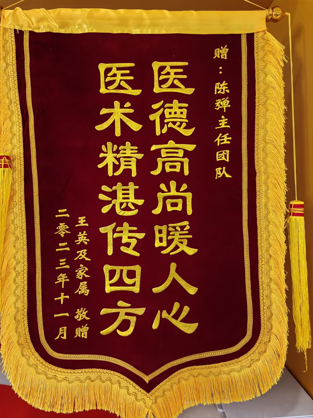 患者王女士及家属赠送锦旗感谢我院心内科陈弹副主任