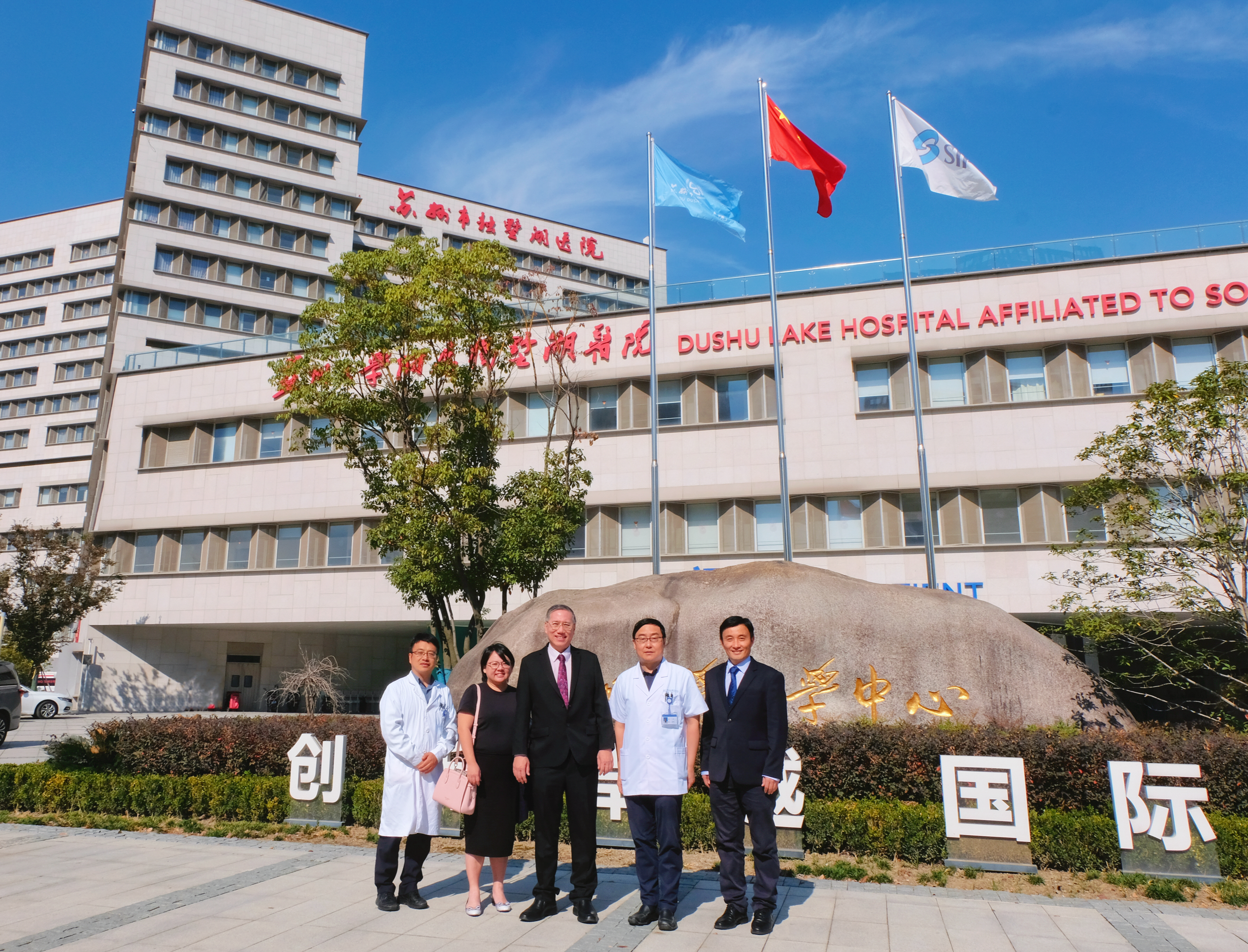 新加坡国立大学医院(National University Hospital,NUH 国大医院)成立于 1985 年 6 月 24 日,是新加坡第一所大学医院,也是新加坡主要的三级和转诊医疗机构,每年接待了超过一百万名患者。医院目前共有1200余张病床,超过9000名员工,其门诊设施包括40个门诊科室、18间特需服务中心和10个门诊分部,医院还设有完备的成人急救和儿童急救中心。医院内还设有3个国家专科中心,即:新加坡国立大学癌症研究所(NCIS)、新加坡国立大学心脏中心(NUHCS)、新加坡国立大学口腔医学中心(NUCOHS)。与新加坡国立大学医院合作项目是我院开展国际交流合作的重要项目,包含临床诊疗、国际转诊、人才培养、新药试验等多领域的项目开展将加深中新医疗领域的合作与发展。此次访问进一步推动了独墅湖医院与国大医院的合作,相信双方未来的医疗合作将取得丰硕的成果,为民众带来健康和福祉。
