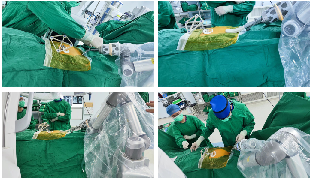在多方打听后,抱着一线希望,丁老太家属带着患者来到了苏州大学附属独墅湖医院骨科姜为民主任的诊室。在充分了解丁老太的病情及诉求后,姜主任建议患者再次行椎体强化术。一家人经历了由绝望到希望的过程,但同时难免也有一丝担忧,因为此前的几位专家都告知他们无法手术。面对丁老太的难题,姜主任的自信不仅来自他多年积累的手术经验,还有我院新引进的第二代国产手术机器人的辅助。