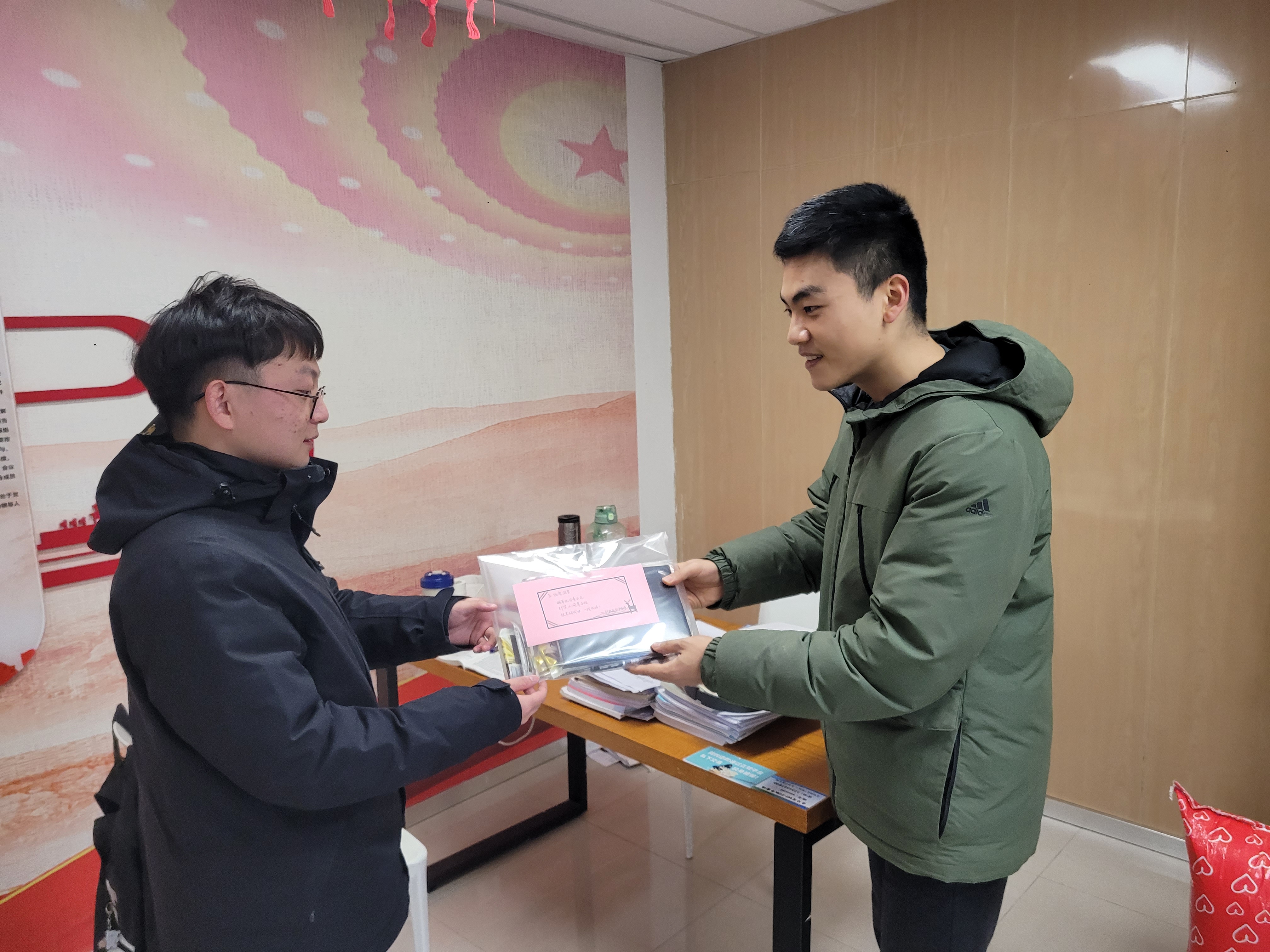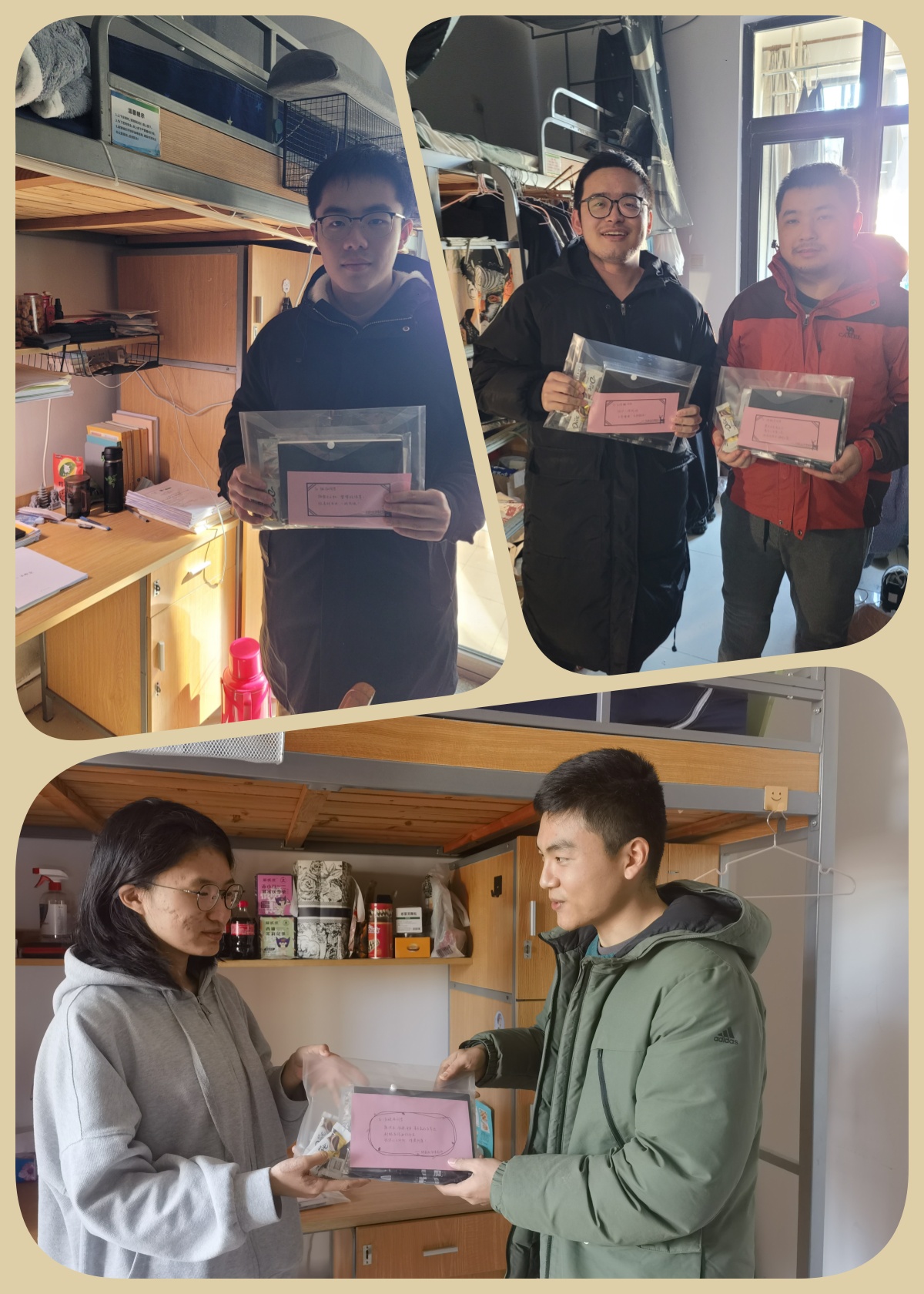 接着,将精心准备的“考研暖心礼包”送到每一位考研学子的手中。礼包中不仅有考试必备的文具包、暖贴、巧克力等实用又暖心的物品,还有一份特殊的礼物,那就是科教处老师手写的祝福语,字里行间都凝聚着对考研学子的真挚关心与美好祝愿。