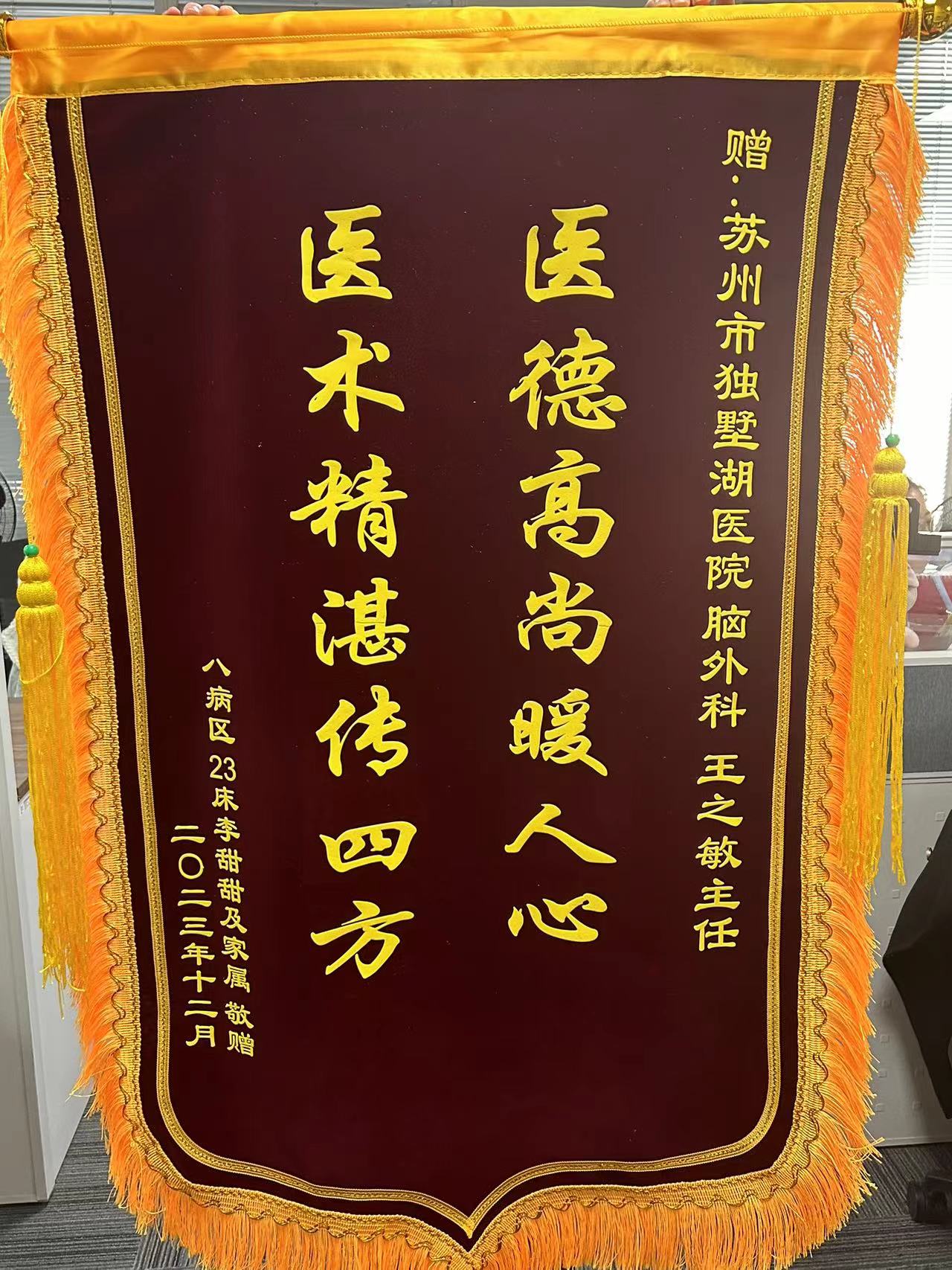 患者李女士及家属赠送锦旗感谢我院神经外科王之敏主任医师