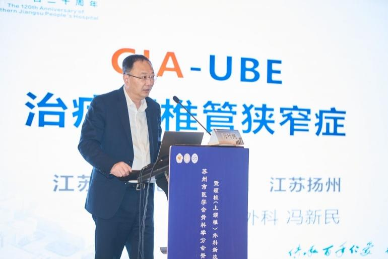 单侧双通道内镜技术(UBE)作为脊柱外科的微创新技术,受到各大医院脊柱外科医生们的广泛青睐。今年“江苏省UBE联盟”新成立,UBE技术在省内发展可谓方兴未艾,我院作为“江苏省UBE联盟常务理事单位”,也在大力开展该项技术。此次大会,诸多专家就UBE的各类应用情况发表了自己的观点。扬州大学附属苏北人民医院大外科主任、骨科主任冯新民给我们带来了“CIA-UBE治疗腰椎管狭窄症”的授课。
