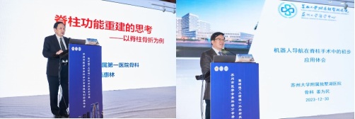 经过短暂的休息,来自苏州大学附属第一医院骨科主任杨惠林以“脊柱功能重建的思考——以胸腰椎骨折为例”为题进行了授课。我院骨科主任姜为民也分享“骨科手术机器人辅助脊柱手术的初步应用体会”。