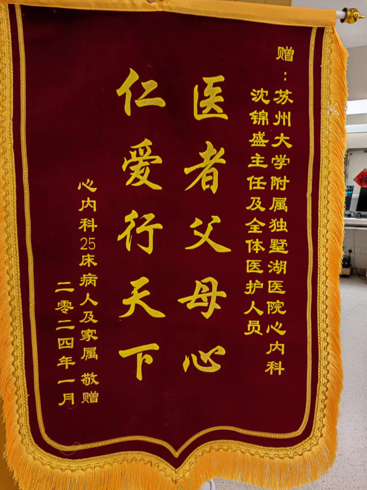 25床患者及家属赠送锦旗感谢我院心内科沈锦盛医生及全体医护