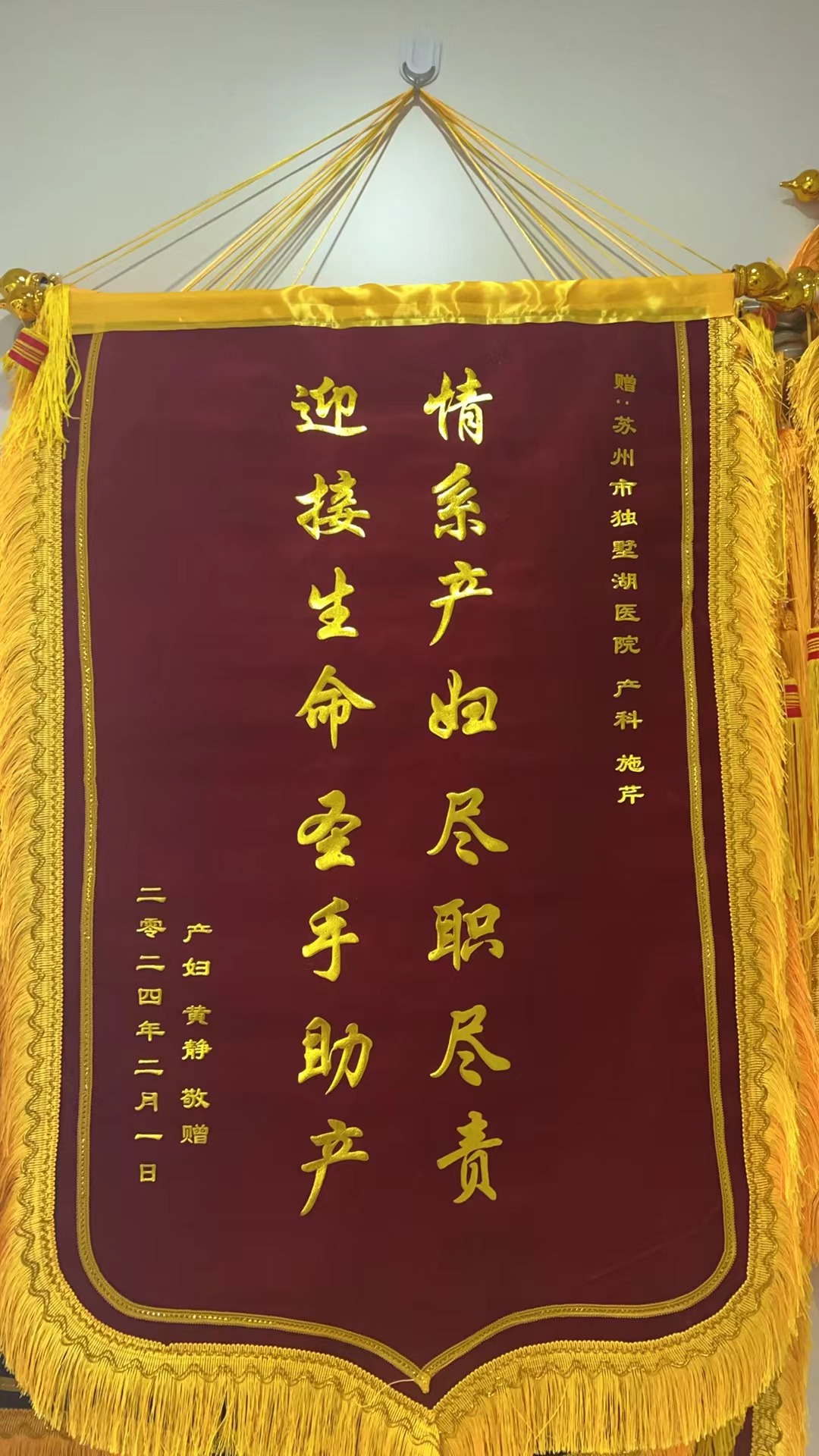 患者黄女士赠送锦旗感谢我院产科护士长施芹