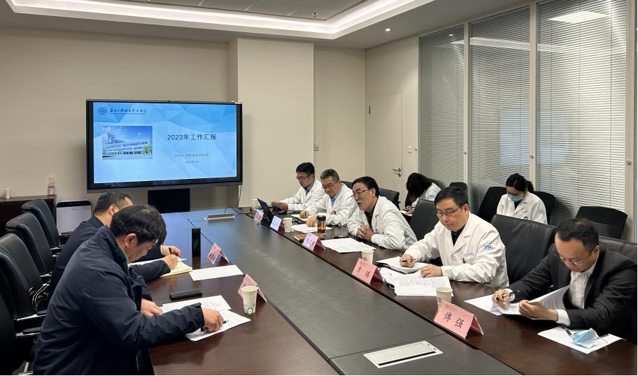 首先,由周亚峰副院长汇报了2023年医院工作情况。周院长详细介绍了医院在医疗服务、人才引进、学生培养、党建情况等方面的成果,并介绍了中新苏州医学中心的建设规划及进展,对“中-新研究生联合培养”项目规划进行了重点阐述。