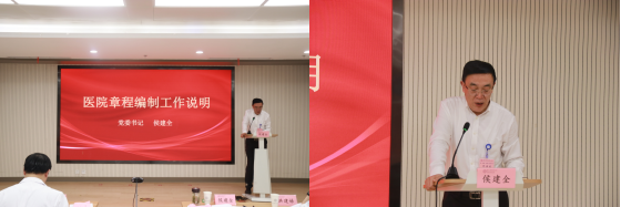 会议听取了侯建全书记作《医院章程编制工作说明》。侯书记围绕着医院章程编制背景、编制过程、主要内容等方面对我院章程编制工作进行了详细阐述。侯书记表示,医院章程是明确医院开展社会服务、获得社会支持、接受社会监督的规则和程序,是医院依法自主办院、实施管理、履行公益性的基本纲领和行为准则。医院将以编制章程为契机,推进现代化医院制度落地,加强精细化管理,在实践中不断完善章程内容,为实现医院高质量发展不断努力。