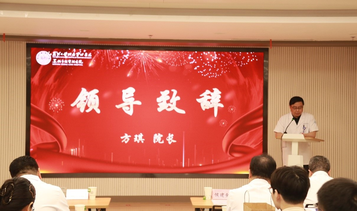 方琪院长发表致辞,他首先对毕业生们表示了热烈的祝贺,并回顾了他们在苏大附四院度过的求学时光,鼓励他们在未来的医学道路上牢记医者仁心的初心,坚守医学伦理的底线,不断提升自己的专业技能和服务水平,为人类的健康事业贡献自己的力量。