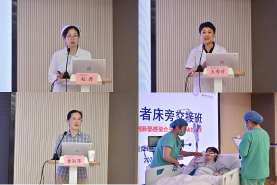 随后,赵丹护士长讲解了临床工作中常见的护理风险及潜在的危险因素。她强调,护生们应该增强自身的风险防范意识,顺利完成临床实习任务,为患者的健康保驾护航。感染管理处王秀珍副主任讲解了医院感染的概述、职业暴露防护、针刺伤的处理等方面内容,督促护生们树立起院感防控意识,更好地落实标准预防。苏州大学附属第一医院原教学科科护士长童淑萍老师强调了仪容仪表和良好护患沟通的重要性,希望同学们能够从细节处展现专业素养,为患者提供温馨、专业的护理服务。最后,中心ICU杨小辉护士长及其团队基于临床案例开展了一场沉浸式交接班教学模拟演练,让护生们更加直观地掌握了交接班流程和核心观察要点。