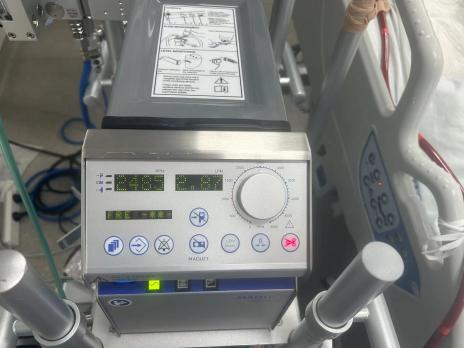 接到病人转入通知后,迅速集结ECMO团队值班人员,迅速完善与患者家属相关谈话及签字,医疗组快速完成患者置管,护理组高效预充管路,医护配合高度默契,一切准备完成,迅速打开阻断钳提高转速,患者静脉暗红色的血随着管路进入模肺,氧合后变成鲜红色又随着管路泵回患者体内,维持患者组织和器官氧合血供,患者的指脉氧迅速回升至100%。ECMO技术为危重患者的救治保驾护航!