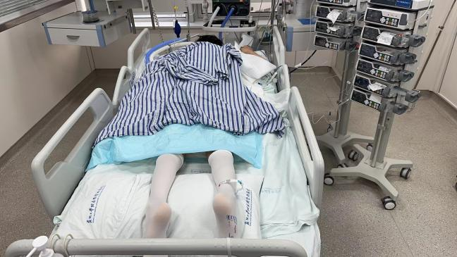 ECMO成功上机为后续救治争取了宝贵的时间,经激素与白蛋白治疗纠正脂肪栓塞综合征,患者呼吸、循环均得到很大改善,5天后成功撤除ECMO,在患者减轻镇静可耐受康复治疗第一时间,我科联同康复医学科进行危重患者床旁康复治疗,后续经历气管切开、抗感染、抗休克、抗凝、保护脏器等治疗后,患者情况趋于稳定,拔除胸腔引流,肢体肌力从初始的1级逐步提高;经骨科、整形外科针对患者创伤情况多学科联合制定治疗方案,陆续行“右桡骨骨折切开复位内固定术”,左侧大腿整形外科予清创、植皮术;随着病情好转,呼吸支持条件逐步下调,成功拔除气切套管后,患者的第一句话就是对医护团队表示感谢。目前器官功能恢复良好,各拟定手术均成功实施,后续至我院康复医学科进行康复治疗。