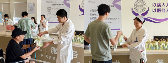 随后,门急诊办公室员工前往各诊区发放清凉小礼品,特别关注老年人、孕妇、儿童等特殊群体,通过更加贴心、务实,更有温度的服务,努力提升患者就医体验感及就诊满意度。