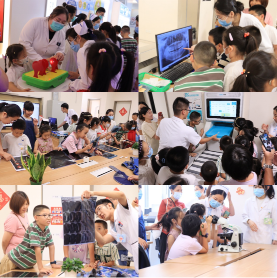 科室参观环节:讲座结束后,小朋友们实地参观了临床检测中心、药学部、放射科和眼科。他们近距离观察了医疗设备,了解了医护人员的工作流程,对平时难以接触到的医疗工作环境有了更直观的认识。在参观过程中,科室工作人员还为孩子们解答了各种问题,让他们更加深入地了解医疗行业。