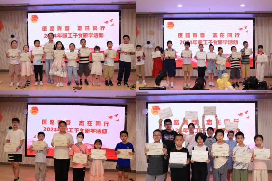 活动结束后,苏大附四院团委为小朋友们颁发了培训证书。为期一天的研学活动在小朋友们的欢声笑语中圆满落幕。此次研学活动不仅丰富了青年员工子女的暑期生活,更是通过亲身体验和实践操作深入体悟医护人员的辛勤付出和职业精神,培育孩子们的未来职业愿景。