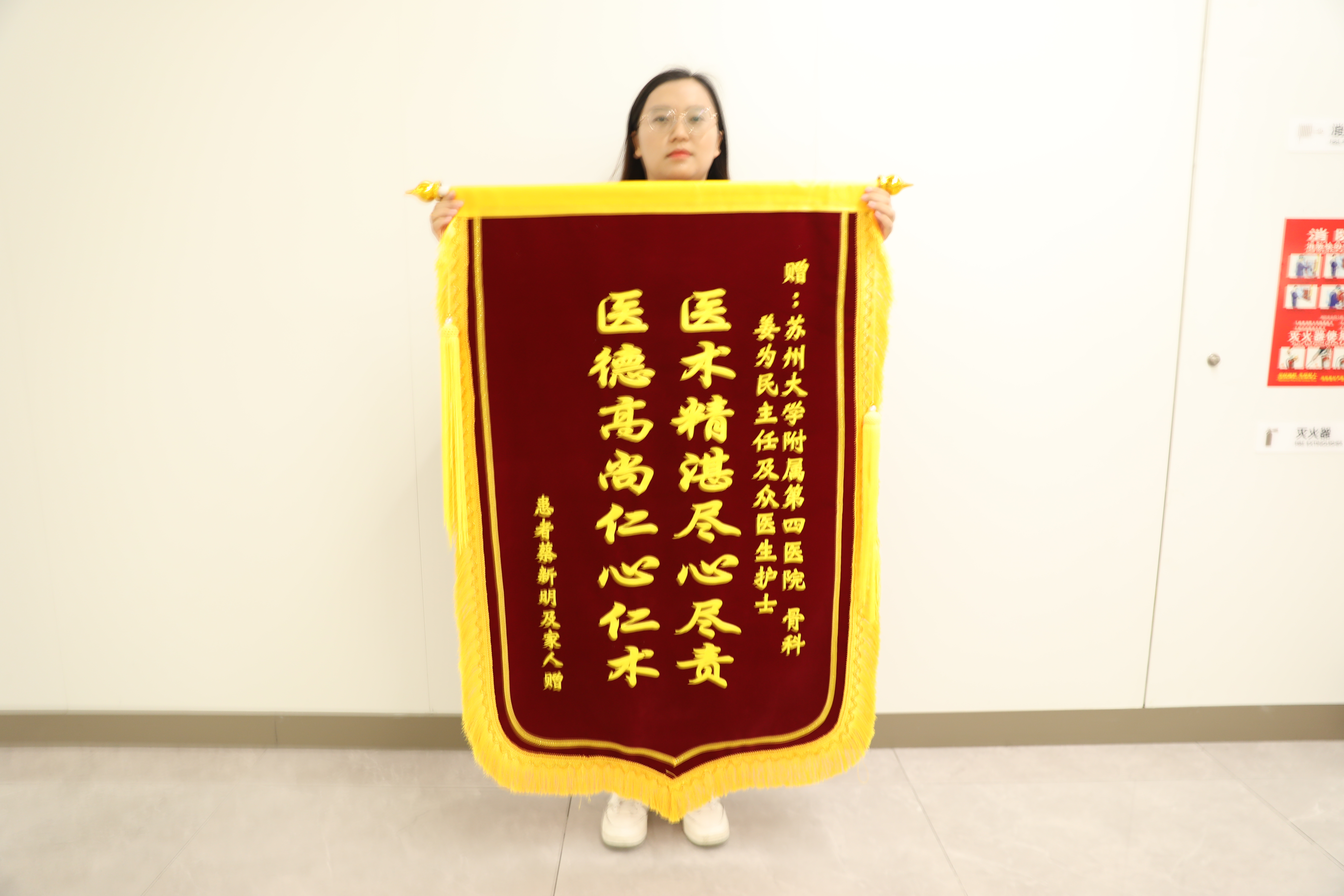 患者蔡女士及家属赠送锦旗感谢我院骨科姜为民主任及全体医护人员