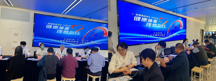 苏州大学附属第四医院是全国高血压达标中心牵头单位,是苏州大学高血压研究所、江苏省泛血管疾病诊疗技术工程研究中心挂靠单位,为贯彻落实《健康中国行动(2019-2030年)》有关要求,推进心脑血管疾病防治工作,提升区域内高血压防治水平,为广大患者的健康保驾护航,苏大附四院心血管内科在医院门诊大厅开展了全国高血压日大型义诊活动。