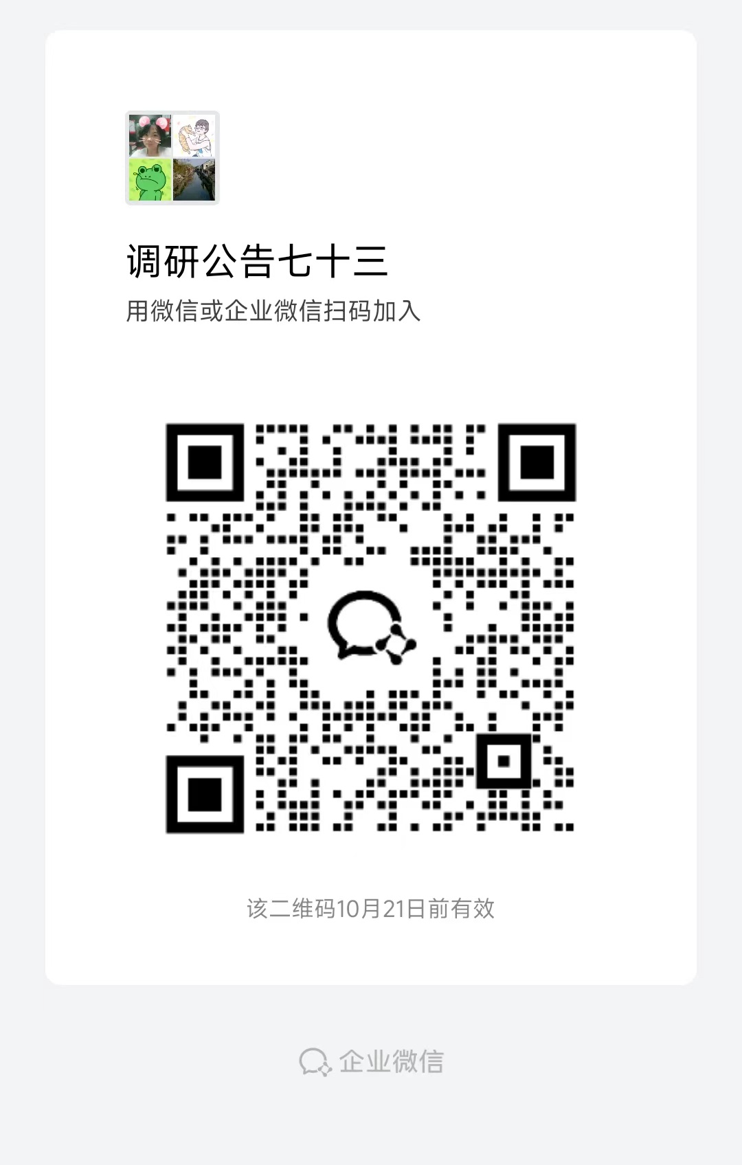 9. 各报名公司扫码加入调研公告群(群二维码见附件5),并修改备注名为报名公司名称,方便后续通知参加介绍会。