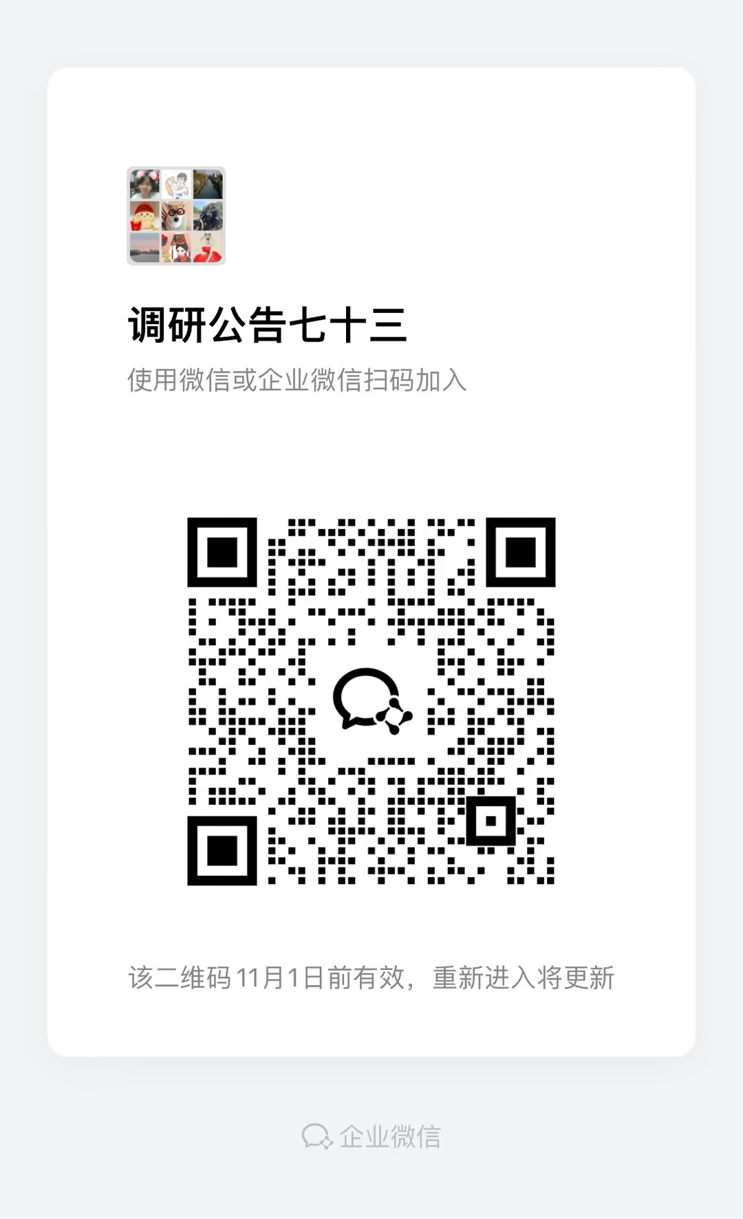 9. 各报名公司扫码加入调研公告群(群二维码见附件5),并修改备注名为报名公司名称,方便后续通知参加介绍会。