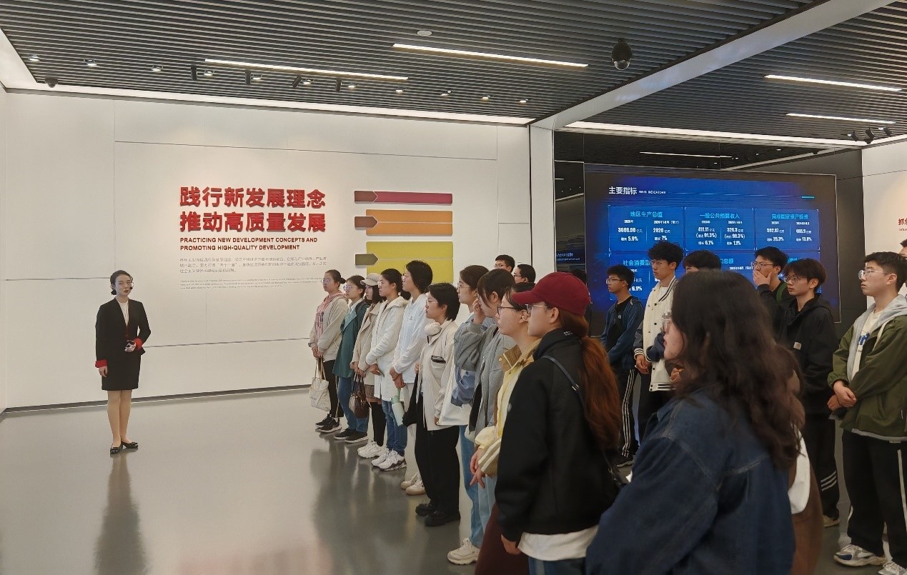 活动开始于上午10时,苏州工业园区档案大厦展示中心。在讲解员的引领下,同学们首先参观了展示中心一层,详细了解苏州工业园区的开发建设历程——从1994年中新合作苏州工业园区启动建设开始,到如今已经成为一个现代化、国际化的城市新区,园区经历了从无到有、从小到大的发展历程。展区分为多个版块,中新合作、发展历程、改革开放试验田等,全面展示了园区的建设背景和成就。同学们深刻领略园区在改革开放和现代化建设中所取得的巨大成就;感受到工业园区人在这一过程中所付出的辛勤努力和汗水;全面了解到苏州工业园区践行新发展理念、推动高质量发展的辉煌成就,特别是为“强富美高”新江苏所呈现的开放创新综合试验方面“园区样本”以及其中的突出贡献。