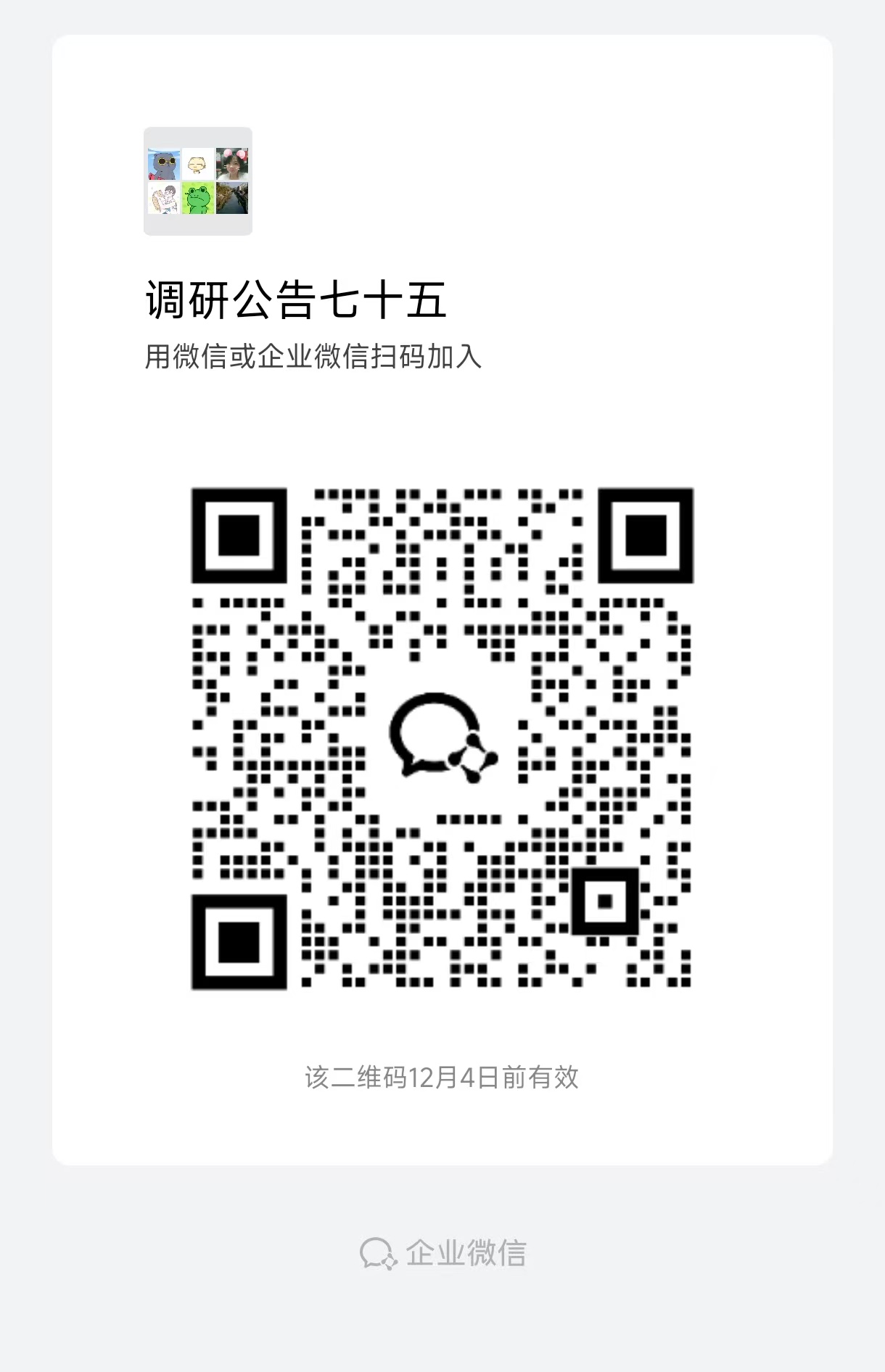 9. 各报名公司扫码加入调研公告群(群二维码见附件5),并修改备注名为报名公司名称,方便后续通知参加介绍会。