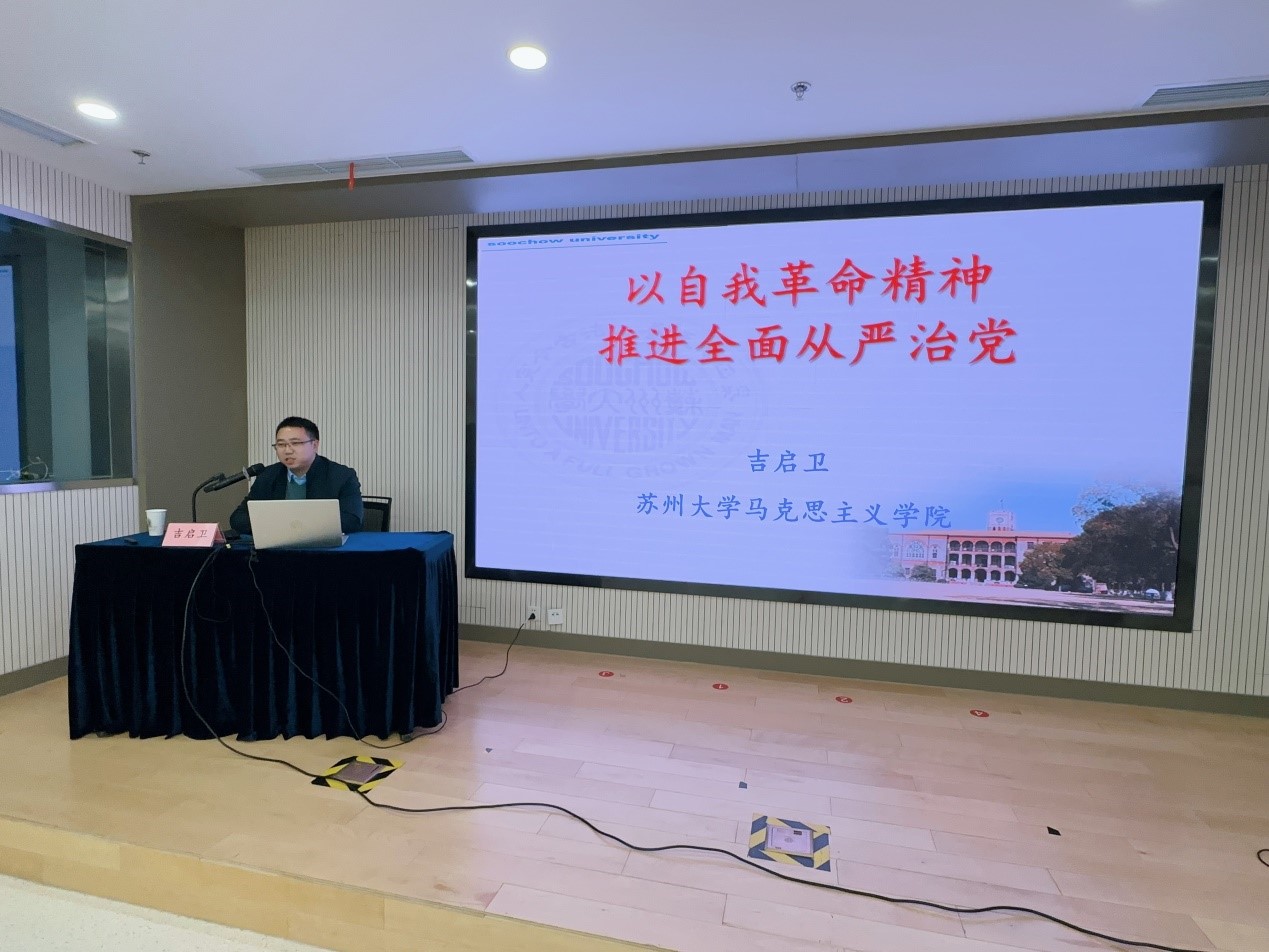为进一步学习、落实习近平总书记关于全面从严治党的重要论述,坚定不移推进医院全面从严治党向纵深发展,1121日下午,苏州大学附属第四医院举办了“清风医院 廉洁讲堂”第三讲课堂活动。苏州大学马克思主义学院习近平新时代中国特色社会主义思想概论教研室主任吉启卫受邀作专题讲座。苏州大学附属第四医院党务部门负责人、各支部委员以及部分科室职工代表参加本次活动。