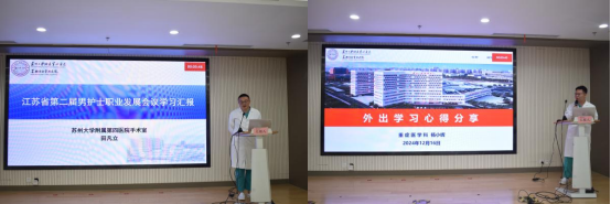 为检验2024年外出学习护理人员的学习效果,实现“一人学习、成效共享、协同提升”的目标,近日,苏州大学附属第四医院护理部举办了两场“护理人员外出学习”交流分享会,共有25名护理人员作汇报。护理部王洁主任主持分享会并作点评,大科护士长沈梅芬、赵丹以及临床科室护士长、各科带教老师、护理骨干等累计200余人次参加本次分享会。