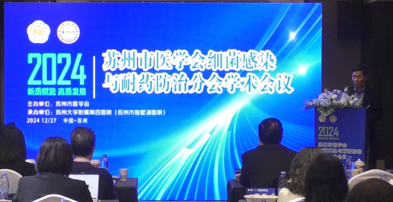 苏州市医学会谭秋生秘书长在致辞中对本次会议的举办表示衷心的祝贺。他表示,苏州市医学会细菌感染与耐药防治分会始终致力于提高合理规范使用抗菌药物的意识、提高细菌感染方面诊疗技术、加强多学科协作。通过交流,不仅能够促进苏州地区在耐药防治方面的工作,更能为全国范围内解决这一问题做出更大的贡献。