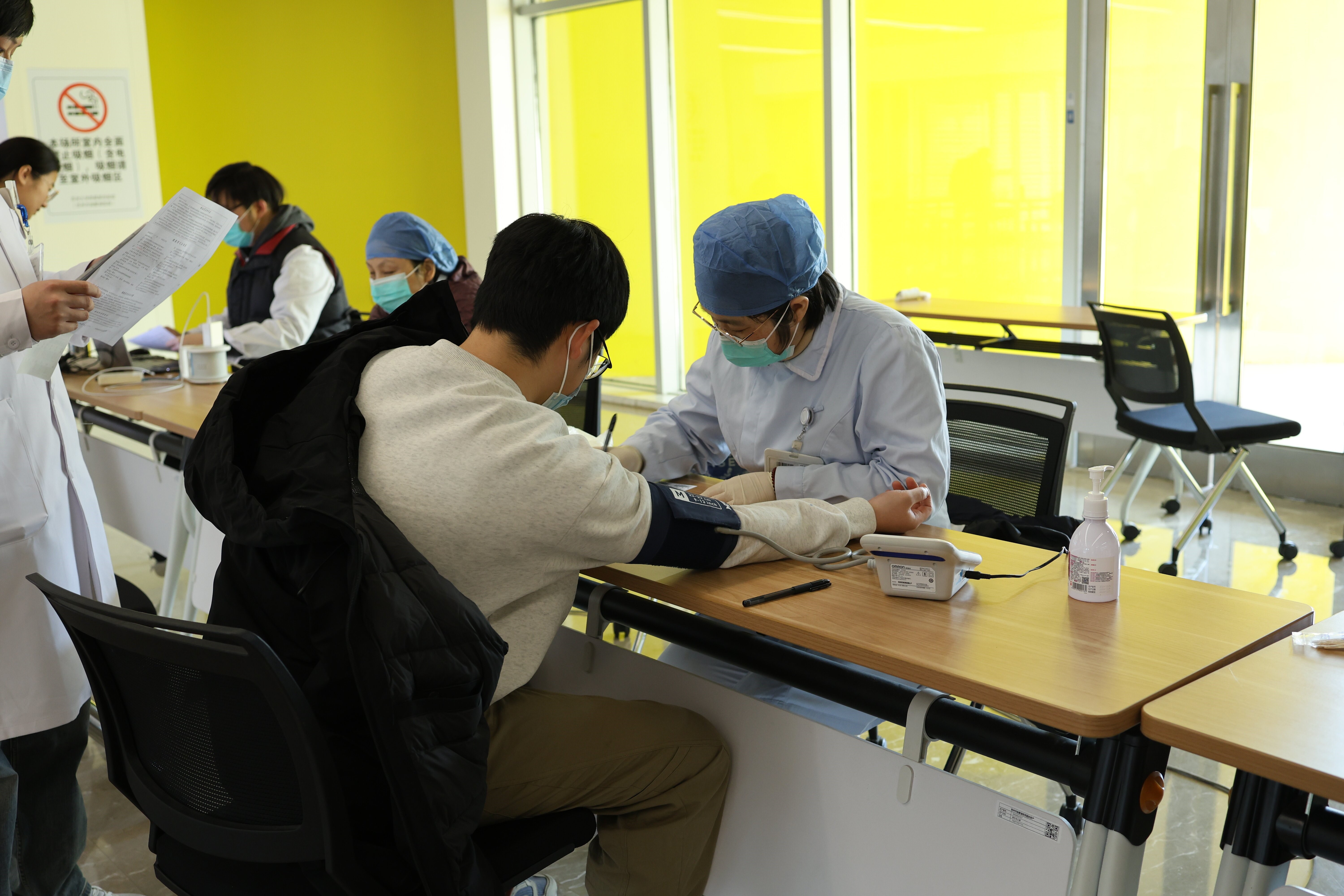 活动现场,前来献血的医院职工井然有序地完成了献血前的登记、体检等一系列准备工作。他们当中,不仅有经验丰富,多次参与献血活动的“爱心传递先行者”,也有首次尝试,带着些许紧张与期待的新面孔。每一个医院职工的心中都怀着对社会的责任感和对生命的尊重。