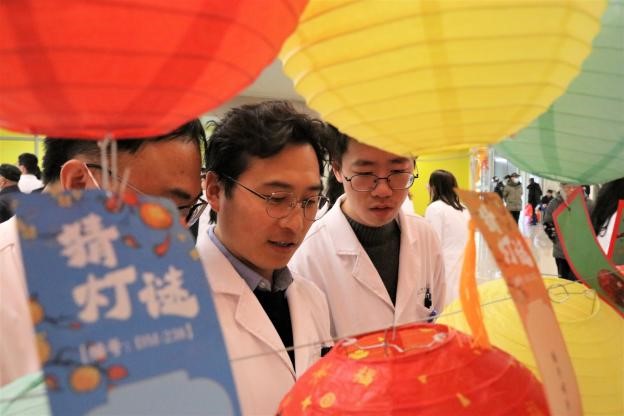 猜灯谜作为元宵节的代表性传统活动,受到了大家的热烈响应。灯谜内容广泛,谜题设计涵盖医学知识、历史文化、生活常识等。同事们或独自思考,或聚众讨论,现场不时传来阵阵欢声笑语。